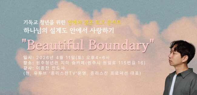 원주지역 청년들을 위한 ‘연애․결혼 토크 콘서트’에 초청합니다. 오늘 날 청년들은 미디어와 각종 영상 매체를 통해 성적인 ‘쾌락’을 우선시하는 세속적 가치관에 무방비로 노출되어 있습니다. 그들에게 성(Sexuality)이 쾌락의 도구가 아니라 하나님이 주신 ‘거룩한 선물’임을 알게 하고, 기독청년들이 연애와 결혼에 있어서 이성과의 관계성을 어떻게 정립할 수 있는지 돕는 토크 콘서트 입니다. 연애결혼토크콘서트 신청서