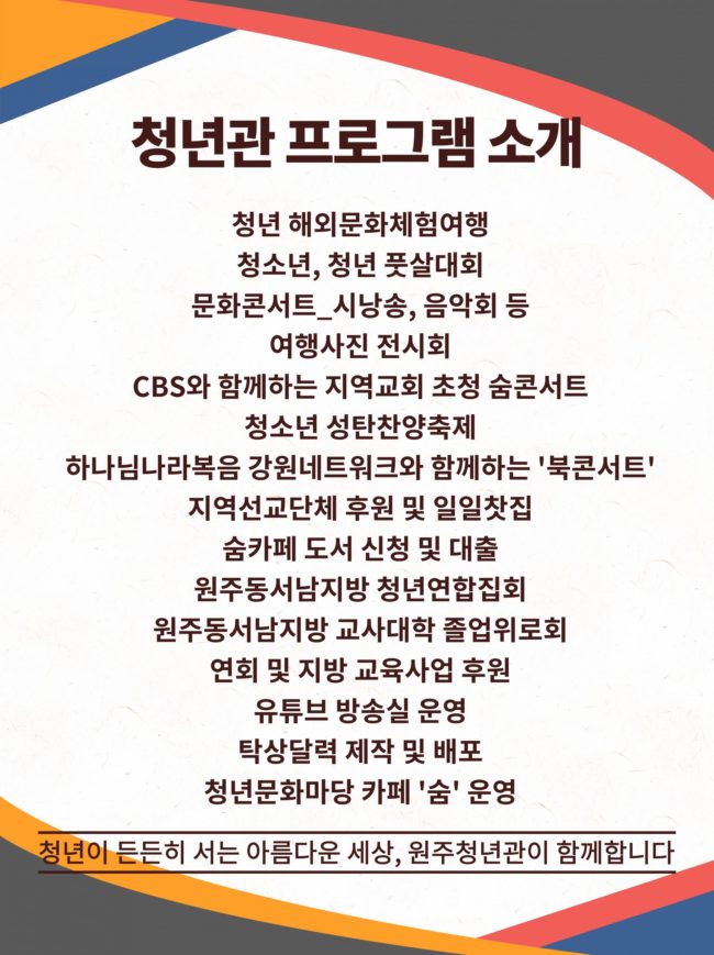 기독교대한감리회 원주청년관 홈페이지입니다.